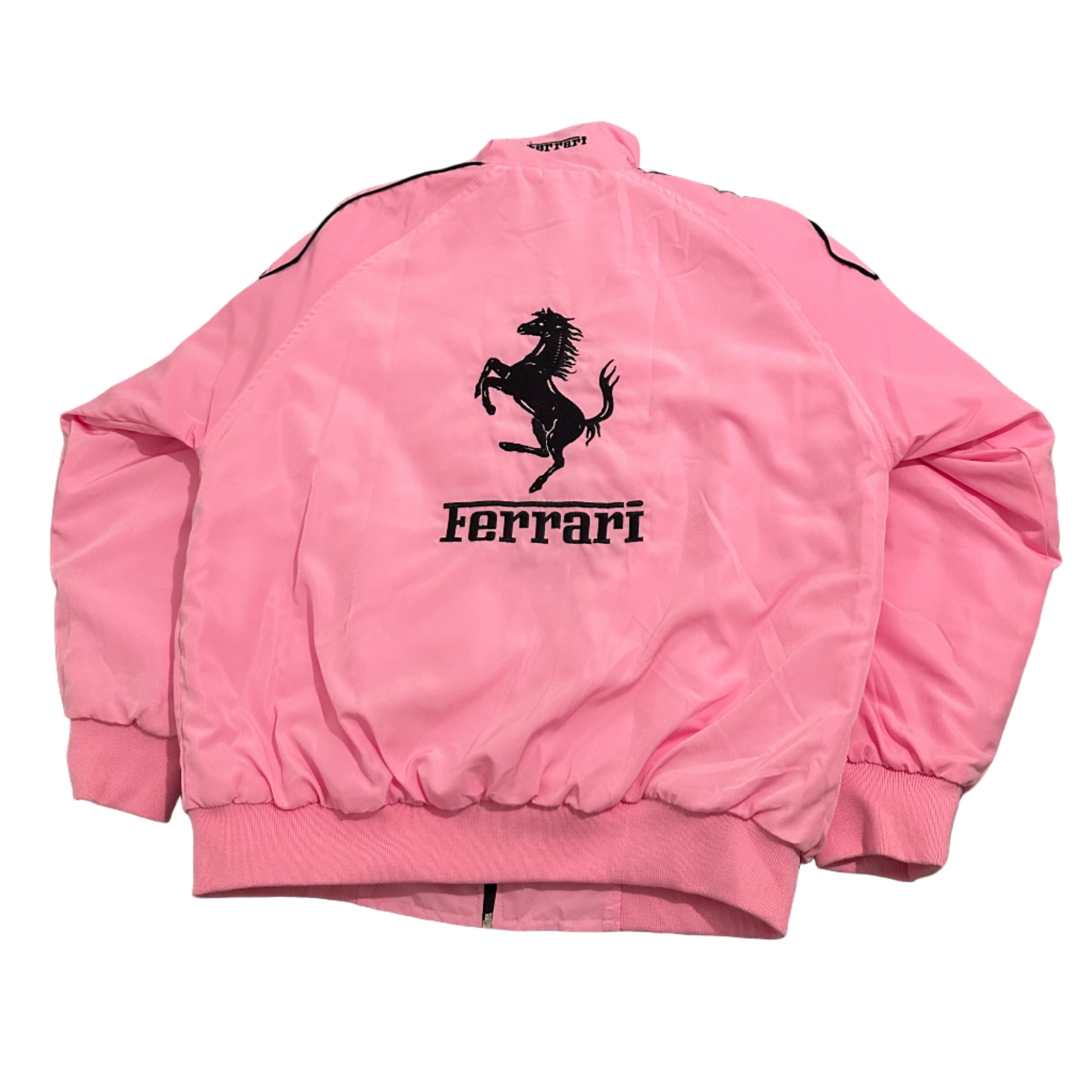 Ferr*ri "Vintage" Jacket in Pink blends racing heritage with premium craftsmanship. Detailed embroidery celebrates the brand's iconic legacy while quality materials deliver durability and comfort. An ideal choice for enthusiasts who appreciate sophisticated, sporty style.
