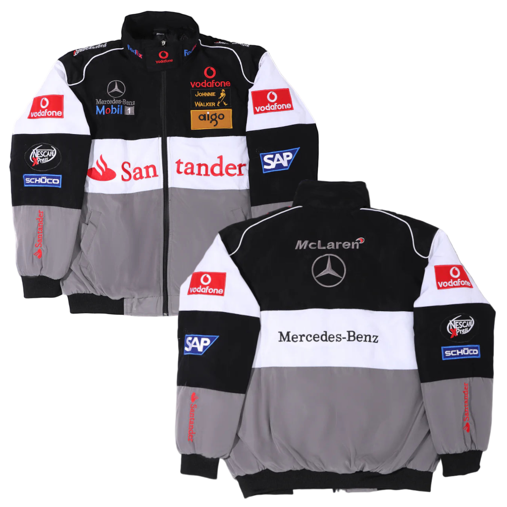 Elevate your style with the Mercedes "Vintage" Jacket in Gray, featuring meticulously embroidered vintage racing insignia. Crafted for enthusiasts who appreciate classic motorsport heritage, this jacket combines timeless design with durable craftsmanship. Its premium embroidery showcases iconic Mercedes racing elements, offering both authenticity and sophistication. Perfect for layering, it delivers comfort and a sleek silhouette, making it ideal for everyday wear or adding a refined nod to your racing passion.